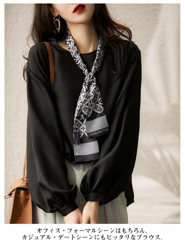 ブラウス レディース バルーンスリーブ 長袖 ボリューム袖 トップス 大きいサイズ ゆったり フォーマル きれいめ オフィス 入学式 とろみ 透けにくい ブラック 春 秋 送料無料
