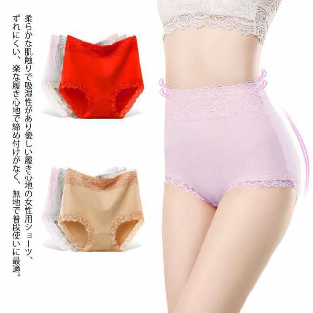 ショーツ レディース ハイウエスト ショーツ セット 3枚セット 下着 レースショーツ 深め 深履き 綿 産後 美尻 おなか 引き締め ストレッチ 無地 グレー 肌色 大きいサイズ 85kg 20代 30代 40代