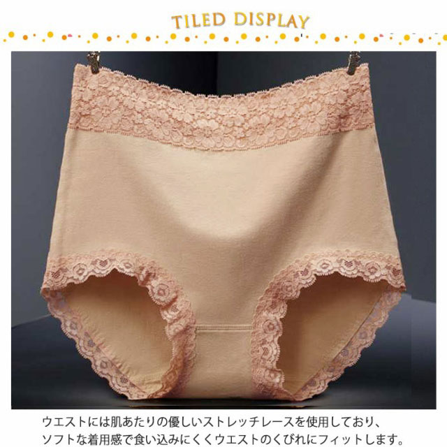 | 柔らかな肌触りで吸湿性があり優しい履き心地の女性用ショーツ、ずれにくい、楽な履き心地で締め付けがなく、無地で普段使いに最適。 ウエストには肌あたりの優しいストレッチレースを使用しており、ソフトな着用感で食い込みにくくウエストのくびれにフィットします。 ウエストからお尻の付け根まですっぽり包み込むデザインで、ヒップについた悪いクセを取り、お尻と太ももの境目を作る役割があります。 股上やや深め、ヒップを持ち上げ、ウエスト・下腹部は美しいすっきりとしたラインに仕上がります。開放感があって快適、美尻美人になるよう、お試してください。 | |