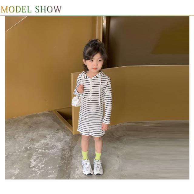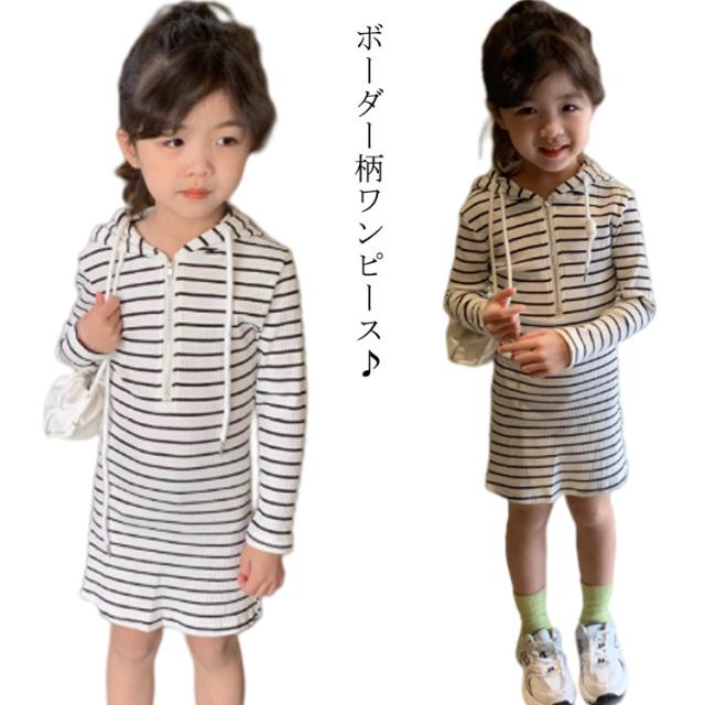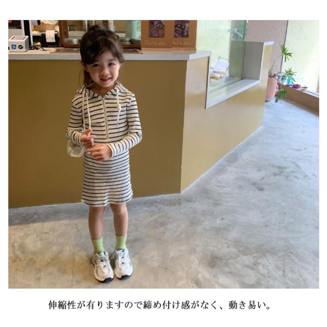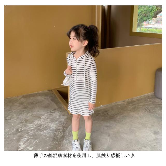 女の子 ワンピース キッズ tシャツワンピ フード付き 子供服 カジュアル 長袖 ボーダー コットン 綿 春 夏 保育園 幼稚園 小学生 可愛い ジュニア おしゃれ おでかけ こども 子ども服 送料無料 90 100 110 120 130 140 150cm
