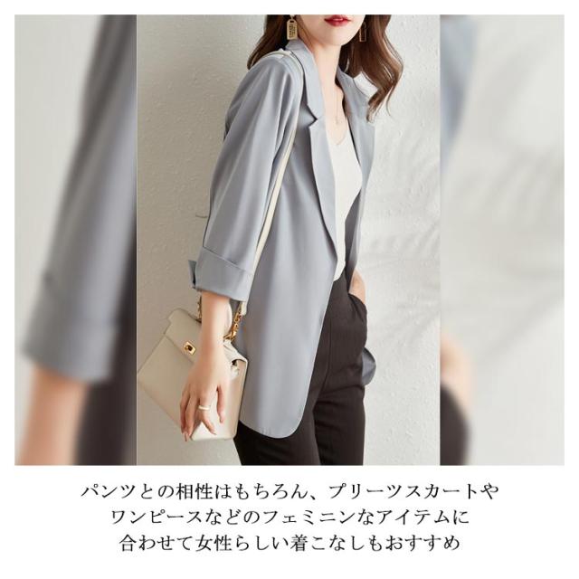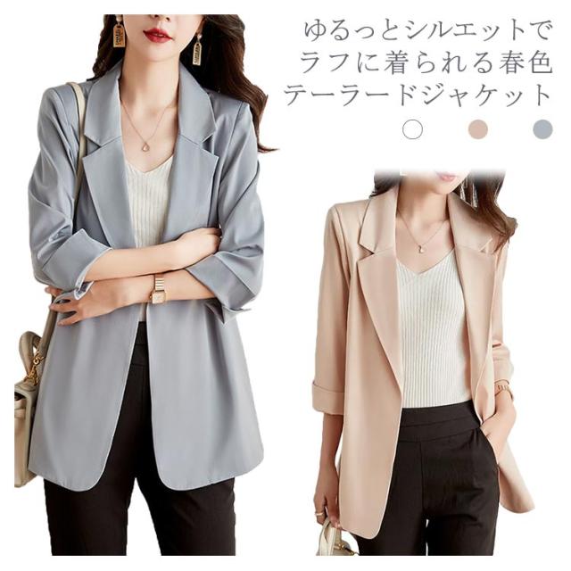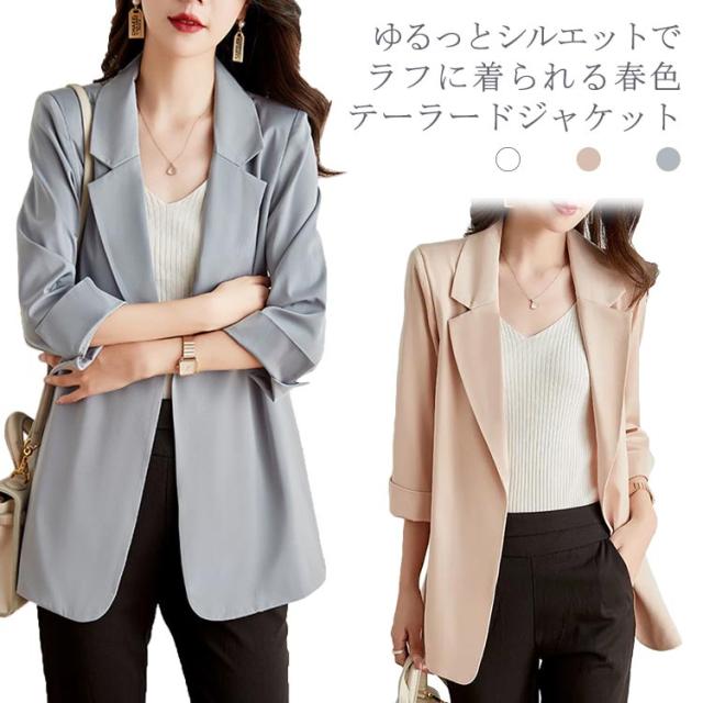 テーラードジャケット レディース フォーマル スーツジャケット 無地 長袖 アウター 上着 ゆる感 薄手 スプリングジャケット ライトアウター 羽織 ミドル丈 シンプル おしゃれ 大人 カジュアル きれいめ OL オフィス フェミニン 通勤 春服 入園 入学 卒業式 春 秋 送料無料