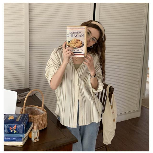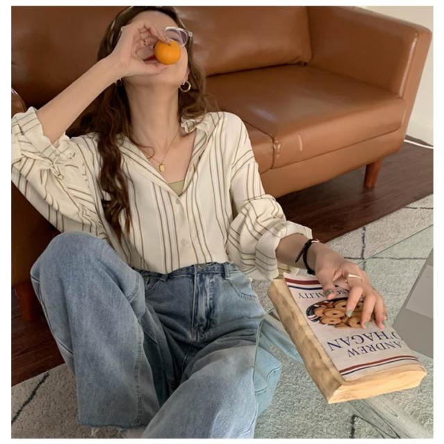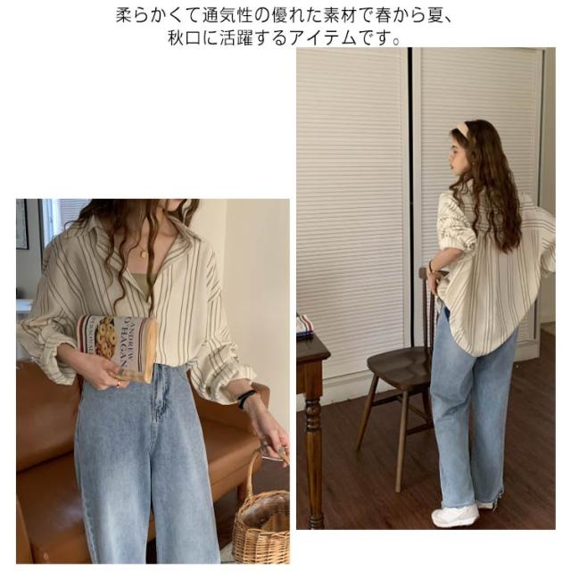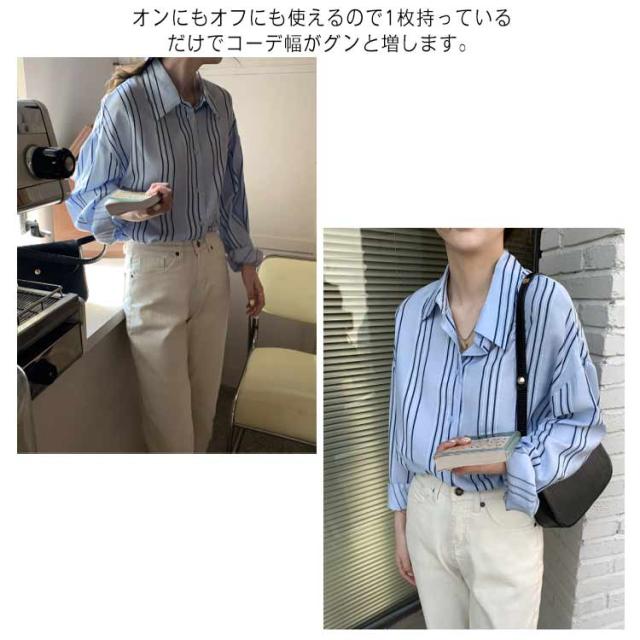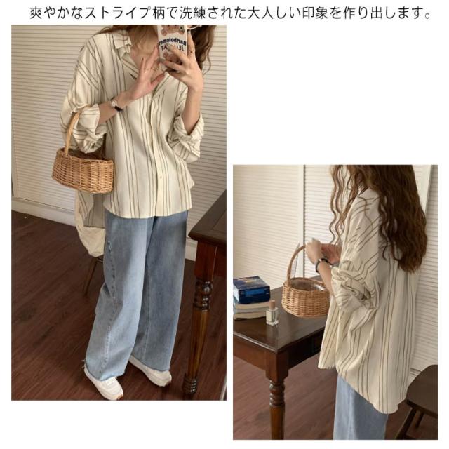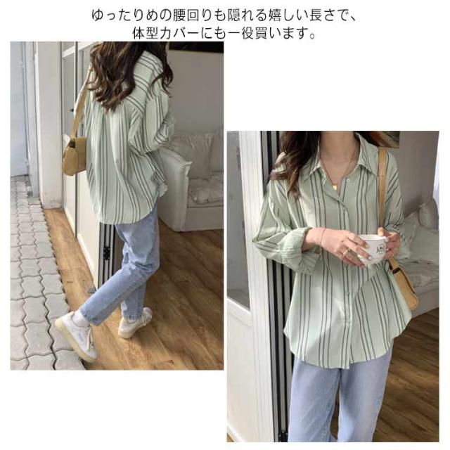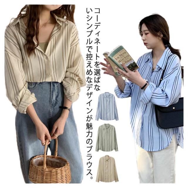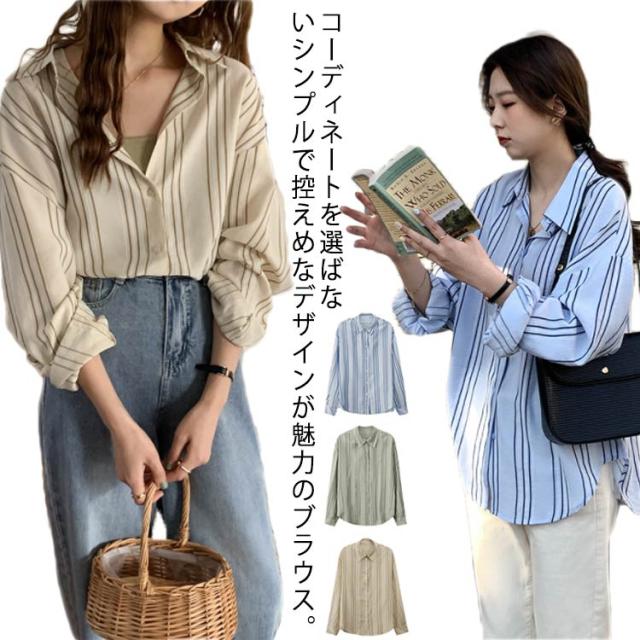 シャツ レディース 長袖 ブラウス ストライプ ゆったり トップス 韓国ファッション カジュアルシャツ オフィス 通勤 お洒落 キレイめ 春秋 体型カバー