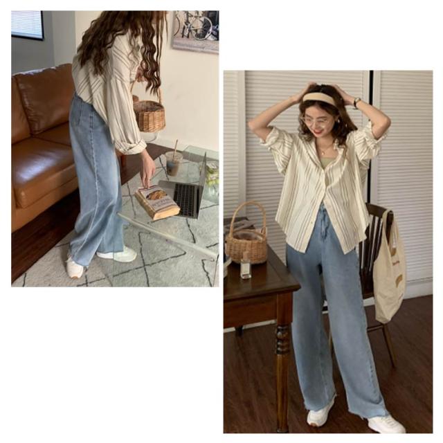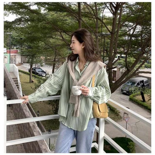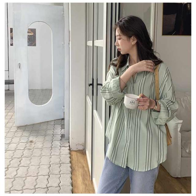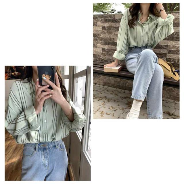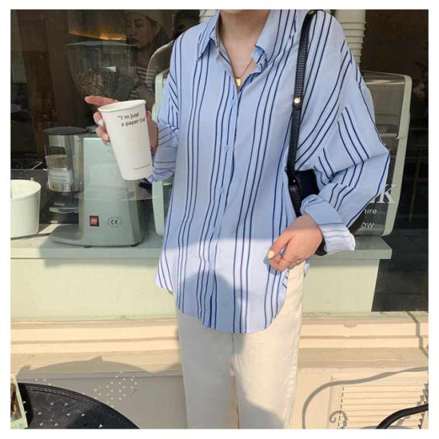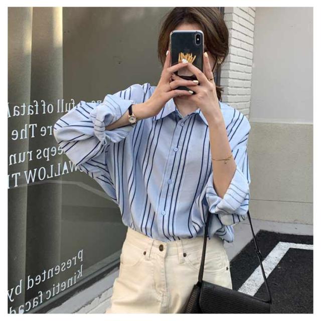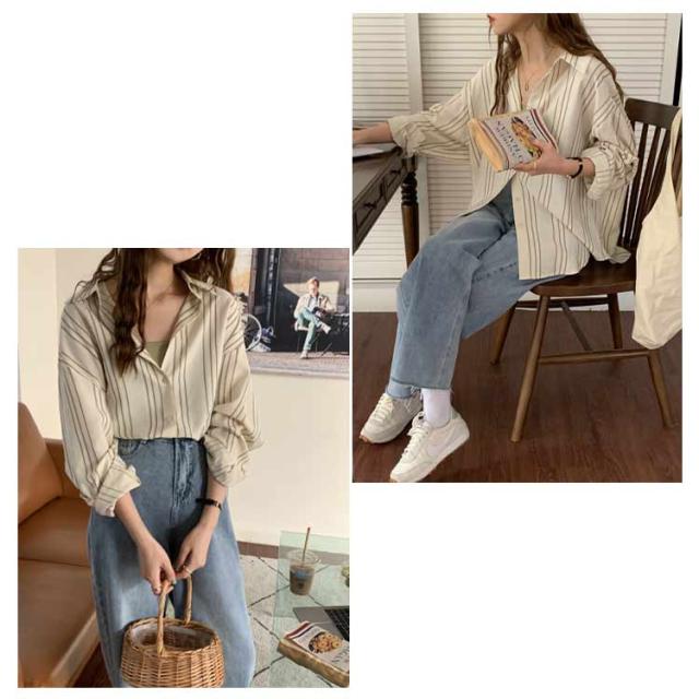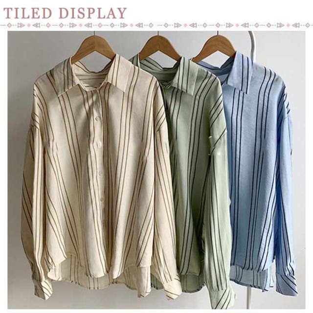 シャツ レディース 長袖 ブラウス ストライプ ゆったり トップス 韓国ファッション カジュアルシャツ オフィス 通勤 お洒落 キレイめ 春秋 体型カバー