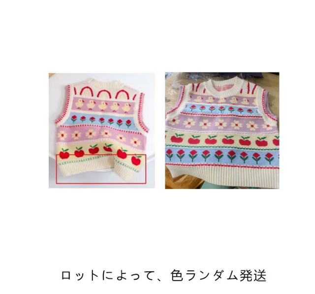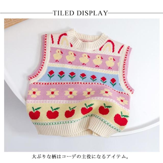 ニットベスト キッズ 女の子 クルーネック 花柄 総柄 ジャガード ニット ベスト プルオーバー 春 秋 冬 トップス 韓国 子供服 赤ちゃん 通園 保育園 幼稚園 80 90 100 110 120 130 かわいい おしゃれ【送料無料】