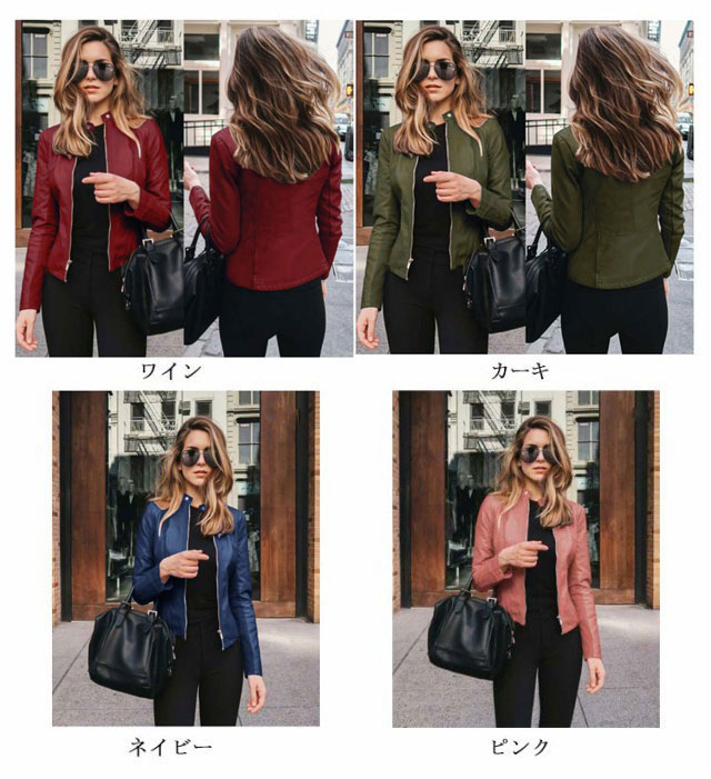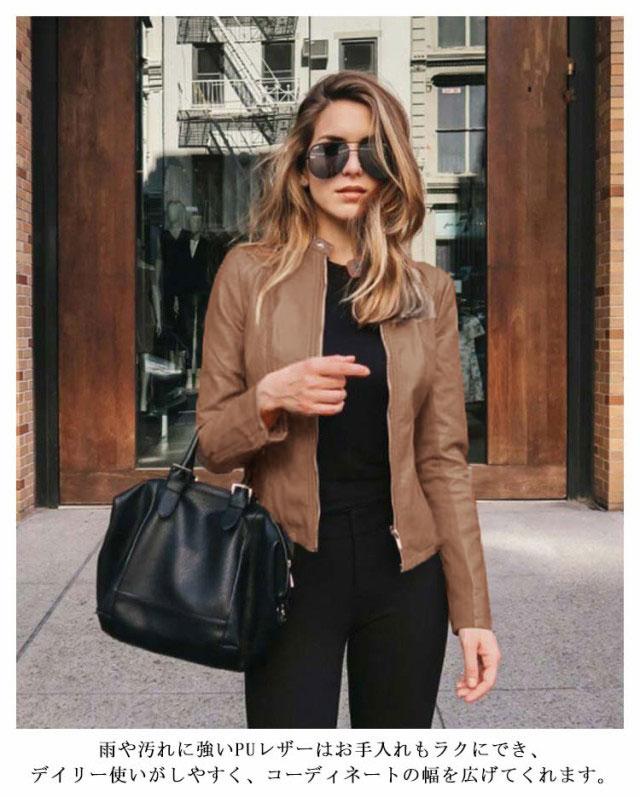 PU レザー ジャケット レディース ライダースジャケット 春 秋 冬 長袖 大きいサイズ シングルライダース ブラック 革ジャン ライトアウター ジャンパー カジュアル 羽織り 上着 ノーカラー ブルゾン 送料無料