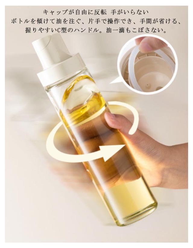 | 【斬新なデザイン】ユニークで斬新なデザイン、キッチンに彩りを添える。戻り油穴設計還流油、ドリップ防止、油の貯留防止、底面の滑り止めデザインは、安定して、簡単には倒れない。 【安全な素材の選択】PP素材を使用し、鉛フリーガラスボディ、健康と安全、より信頼性の高いもの。防漏・防滴、精密なオイルコントロール、清掃が容易。 【自動開閉で】キャップが自由に反転 手がいらない ボトルを傾けて油を注ぐ、片手で操作でき、手間が省ける、握りやすいC型のハンドル。油一滴もこぼさない。 【幅広い適用】食用油・醤油・酢・料理用のワイン・寿司しょうゆなどさまざまな液体調味料を使用することができます。 | |