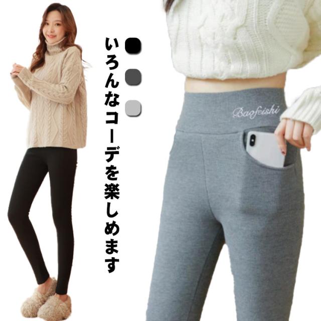 ポケット付き レギンスパンツ 裏起毛 レディース リブ レギパン 極暖 裏ボア モコモコ 防寒 あったか 暖かい ボトムス ハイウエスト 長ズボン タイツ パンツ 細見え 美脚 スキニーパンツ ストレッチ スパッツ 超厚め シープボア レギンス 無地 大きいサイズ L XL 送料無料