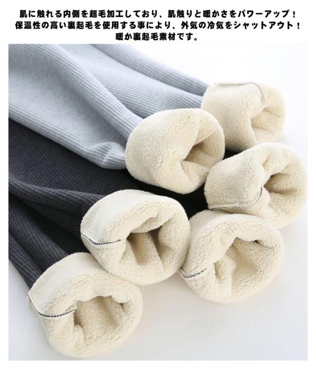 | 【合わせやすい】 いろんなコーデを楽しめます。 お手持ちの服と合わせるとよりコーデの幅が広がります。 【ふんわり柔らか裏起毛素材】肌に触れる内側を超毛加工しており、肌触りと暖かさをパワーアップ!保温性の高い裏起毛を使用する事により、外気の冷気をシャットアウト! 暖か裏起毛素材です。 【上質な肌ざわり・伸縮性】肌ざわりのよいコットン素材を使用した、上質な肌ざわり、とても伸びがよく着脱が楽。伸縮性のある履き心地のいいやさしい素材感で、オールシーズン活躍してくれます。 【フィット感抜群】シンプルな作りで、飽きの来ないデザイン。体にフィットしますので、着痩せ効果抜群。シーンを選ばない使いやすさも魅力的です。 | |