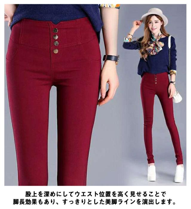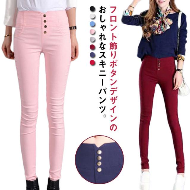 スキニーパンツ スキニーデニム レディース レギパン カラーパンツ スリム 細身 ストレッチ 前ボタン ハイウエスト ゴムウエスト ロングパンツ 10分丈 長ズボン 春 夏 秋 ボトムス 美脚 細見え カジュアル 【送料無料】