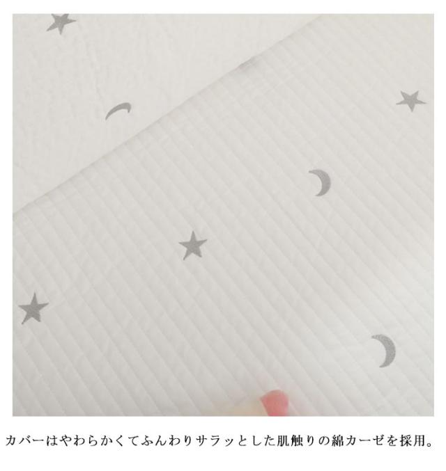 | ベッドの柵に頭や手足をぶつけないように保護できるベビーベッドガード エアコンの風が直接当たらないように防ぐことができます。 カバーはやわらかくてふんわりサラッとした肌触りの綿カーゼを採用。 シンプルなプリントと優しい風合いが赤ちゃんをやさしく包みます。 ベッドへの設置は紐で留めるだけ 厚みのある柔らかウレタンを使用しているので、ベッドへのごっつんをやさしくガードします。 カバーを外して洗いOKなので汚れても安心。 ペッドガードや子ども用座布団、さらにお昼寝マットとしてなどマルチな使い方ができる便利なクッションです! | |