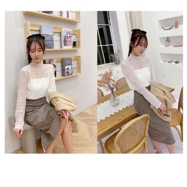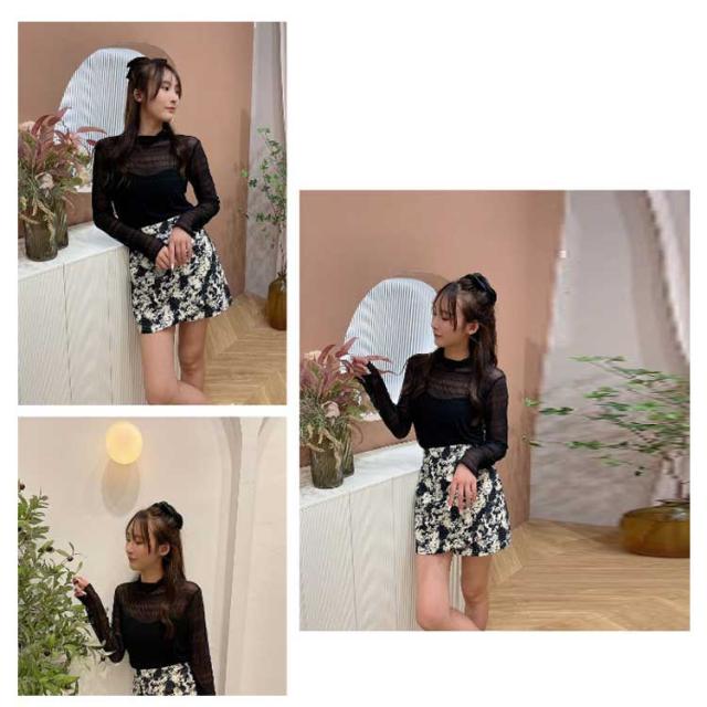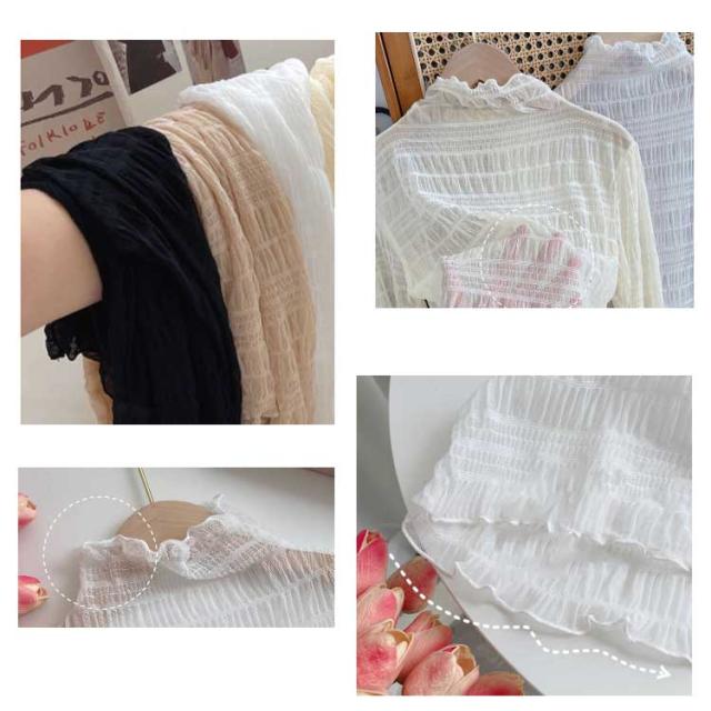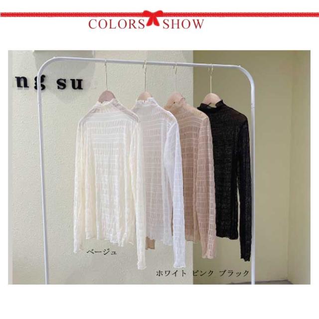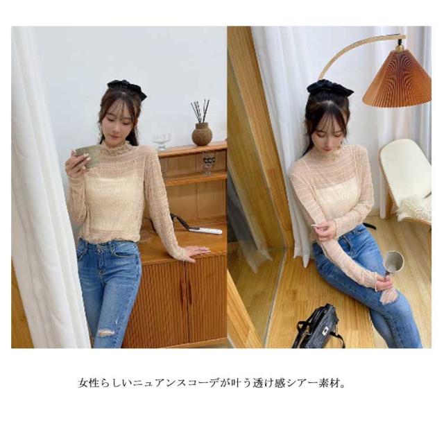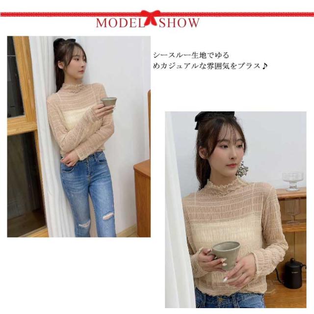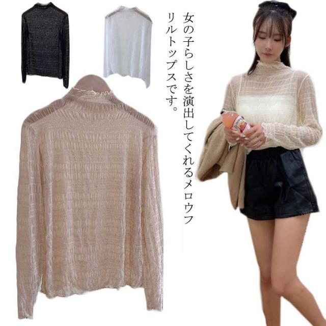 シースルー レース 長袖 トップス レディース メロウフリル シアー カットソー 薄手 春夏秋 透け感 インナー おしゃれ タートルネック レイヤード コーデ 黒 白 可愛い カジュアル エレガント 送料無料