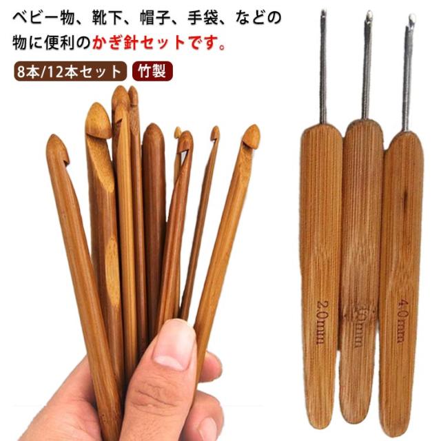 かぎ針セット 編み針 8本/12本セット 毛糸 かぎ針 竹製 かぎ編み 初心者 キット 道具付き 手編み針 基本入門 手編み道具 帽子 ニット 毛糸 送料無料