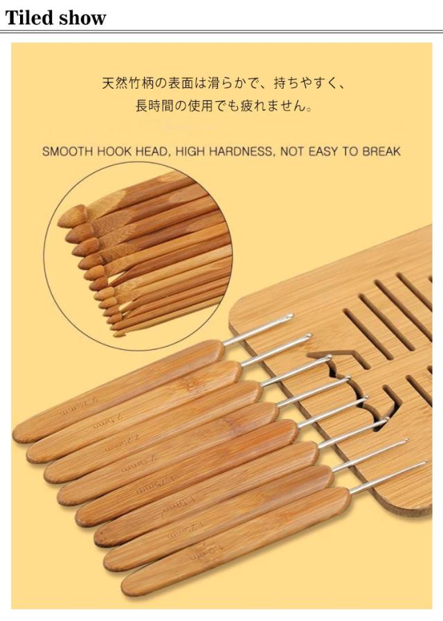 | ベビー物、靴下、帽子、手袋、などの物に便利のかぎ針セットです。 針先から糸がかけやすくて、糸を引き抜きやすい針先形状です。 編み針のハンドルに数値表記が付いて、手持ちの糸に合わせて使い分けができます。 天然竹柄の表面は滑らかで、持ちやすく、長時間の使用でも疲れません。 小さく軽量で、財布やポケットに入れて持ち運びが簡単になります。 | |