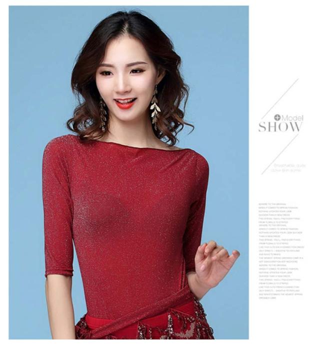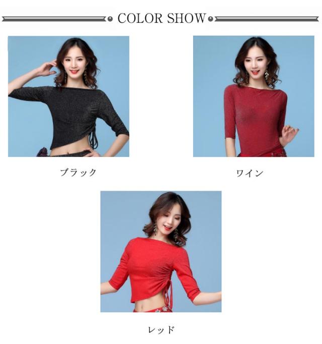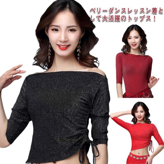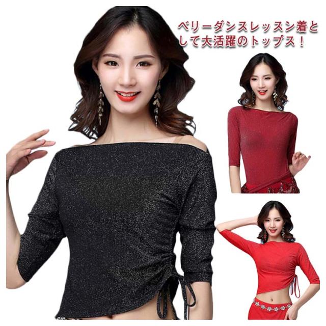 ベリーダンス トップス 社交ダンス レディース 5分袖 ボートネック 上着 レッスン着 練習服 舞台 演出 無地 ダンス衣装 全3色