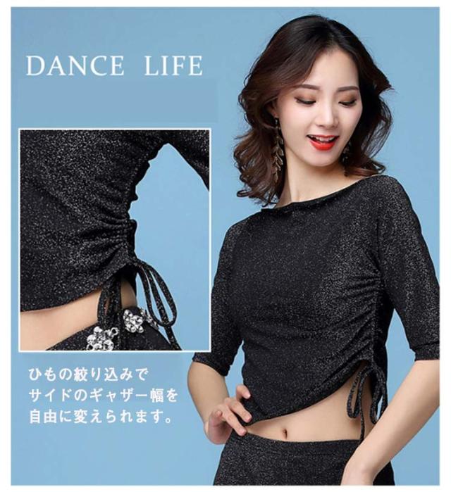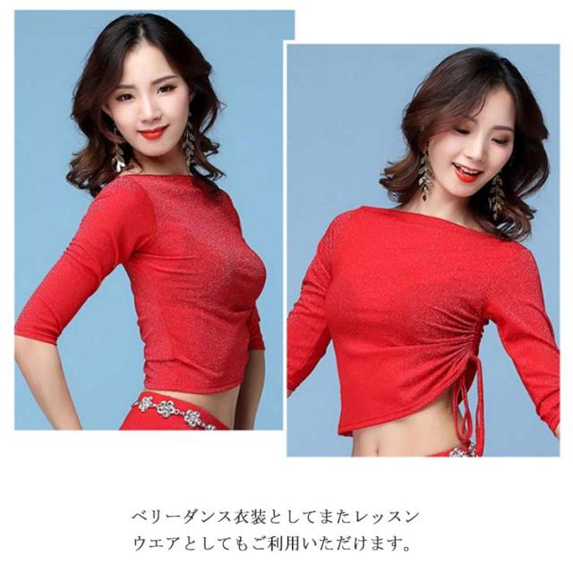 | ・ベリーダンスレッスン着として大活躍のトップス! ・伸縮性がありますので踊りやすいです。 ・ひもの絞り込みでサイドのギャザー幅を自由に変えられます。 ・体に気持ちよくフットしてスタイル良く見えます! ・ベリーダンス衣装としてまたレッスンウエアとしてもご利用いただけます。 | |
