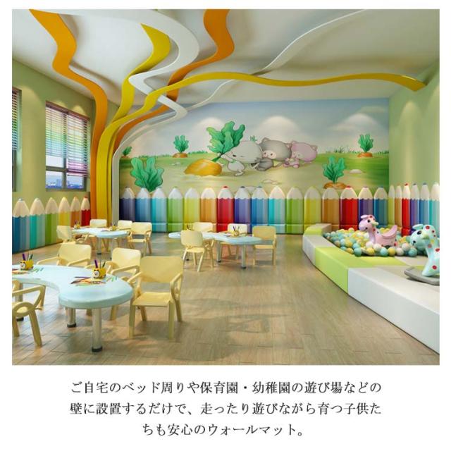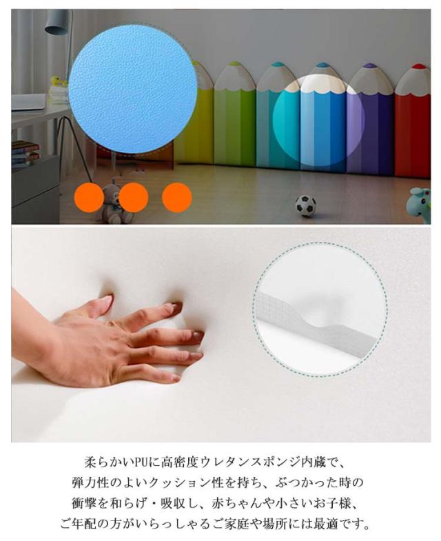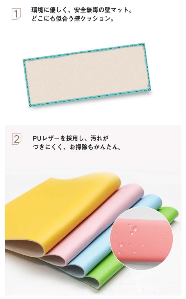 | 赤ちゃんや小さいお子様、ご年配の方がいらっしゃるご家庭や場所には最適です。 頭がぶつかっても怪我しない、痛くないからお子様の安全を強力に守ってくれる壁クッション。 環境に優しく、安全無毒の壁マット。どこにも似合う壁クッション。 柔らかいPUに高密度ウレタンスポンジ内蔵で、弾力性のよいクッション性を持ち、ぶつかった時の衝撃を和らげ・吸収し、赤ちゃんや小さいお子様、ご年配の方がいらっしゃるご家庭や場所には最適です。 PUレザーを採用し、汚れがつきにくく、お掃除もかんたん。 無地シンプルなデザイン、防音・防カビ・断熱・保温・衝撃吸収など機能性抜群の壁マット、保育園や遊び馬、店舗などに最適。 ご自宅のベッド周りや保育園・幼稚園の遊び場などの壁に設置するだけで、走ったり遊びながら育つ子供たちも安心のウォールマット。 | |