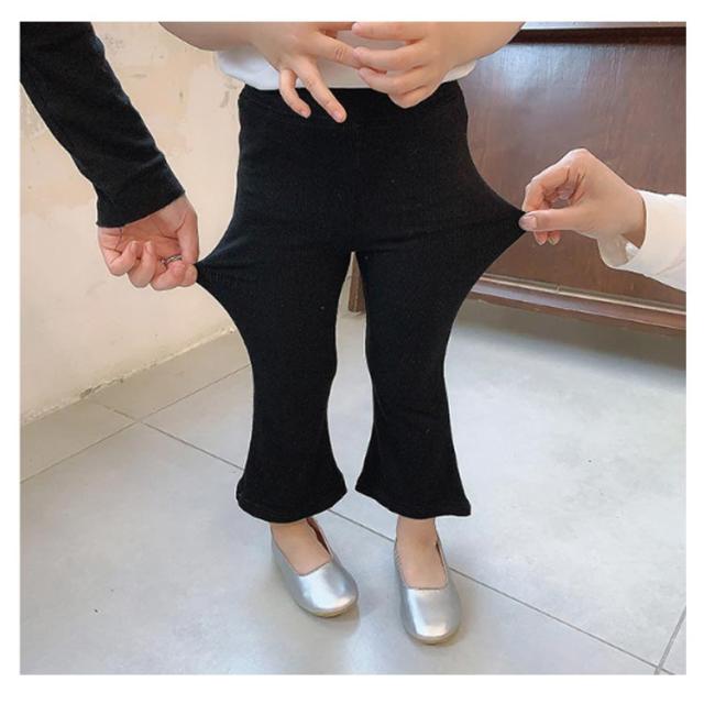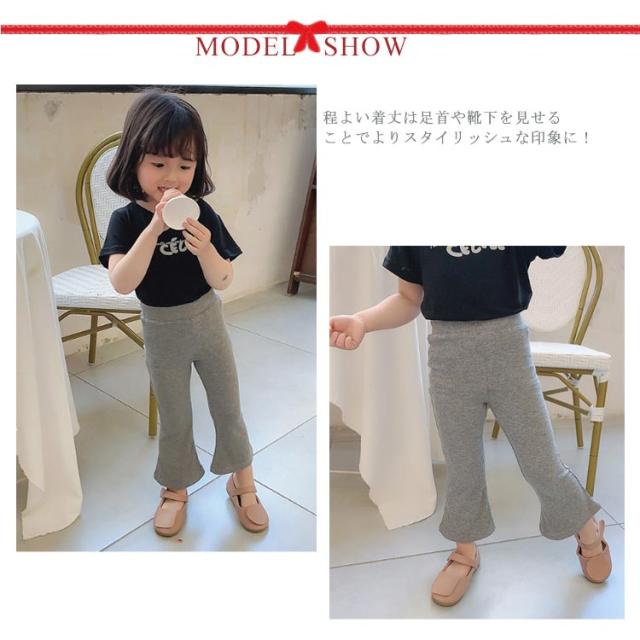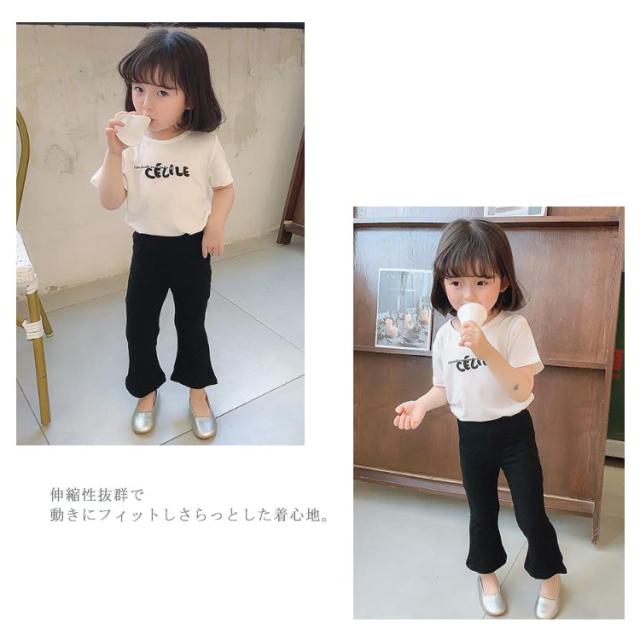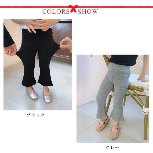 女の子 フレアパンツ キッズ ベビー レギンス 春 夏 秋 ングパンツ ボトムス 子供服 リブ地 ウエストゴム 無地 子ども服 こども服 90 100 110 120 130 140cm おしゃれ 綿 黒 ストレッチ シンプル 送料無料