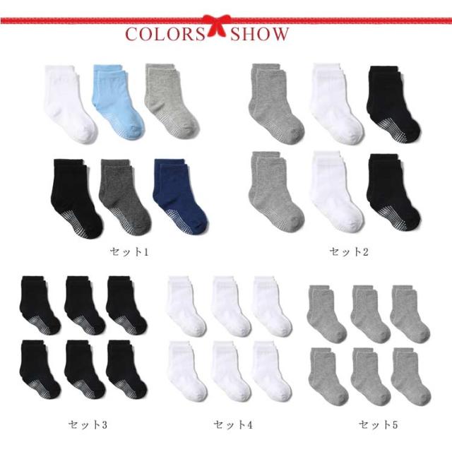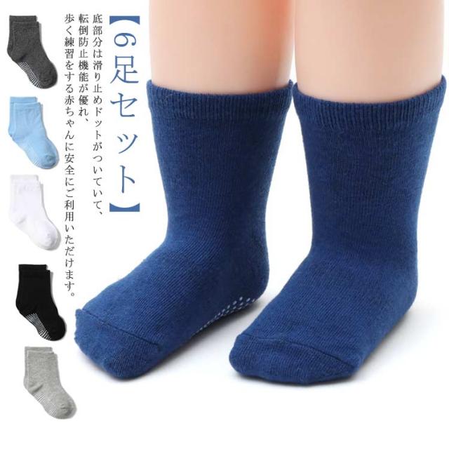 【6足セット】キッズ ベビー 赤ちゃん 靴下 滑り止め付き ソックス 春 夏 秋 冬 男の子 女の子 北欧風 無地 通園 通学 1歳 3歳 5歳 7歳 快適 ルームソックス 綿 クルー丈 ソックス くつ下 送料無料