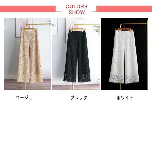送料無料 クラシカルレース フレアパンツ レディース ワイドパンツ ガウチョパンツ パンツ レース 総レース 透け感 シアー 裏地あり ロング丈 リラックスパンツ 花柄 レース ゆったり 体型カバー 大人 きれいめ レイヤード 重ね着