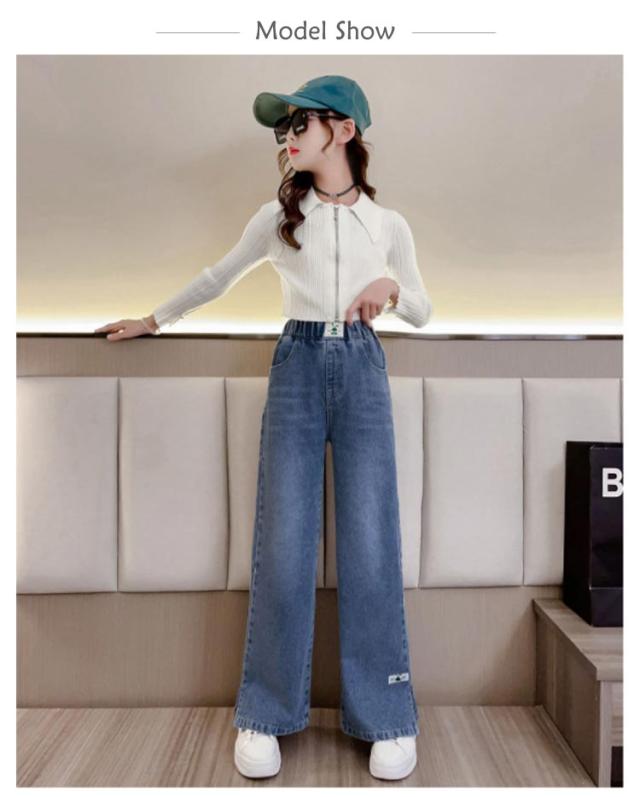 キッズ デニム パンツ ワイドパンツ ジーパン ストレートパンツ デニムパンツ 韓国子供服 子供服 幅広 ウエストゴム ロングパンツ 女の子 小学生 服 春服 120 130 140 150 160 170 韓国こども服 長ズボンこども おしゃれ hiphop ヒップホップ ストリート ガールズ 送料無料