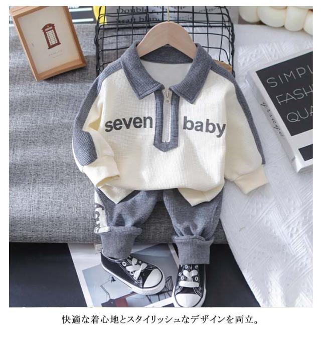 子供服 スウェットセット セットアップ スポーツウェア 男の子 男児 キッズ 長袖 襟付き ハーフジップパーカー プルオーバー ウェストゴム トレーナー 通園 春 秋 全3色