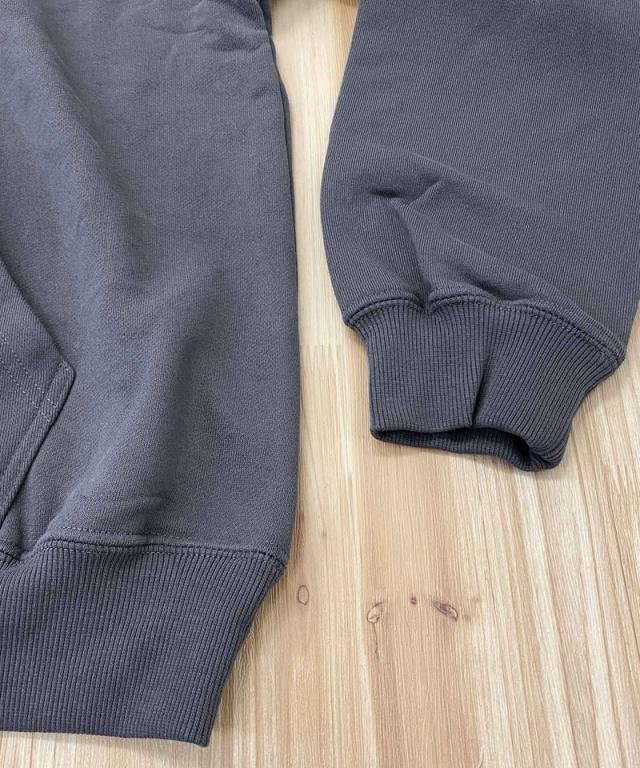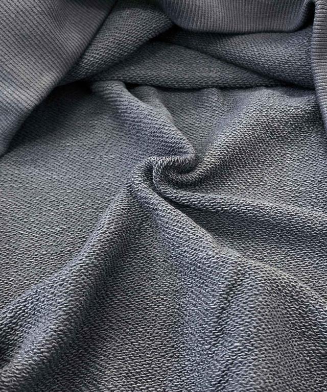 12.5ozのヘビーウェイトのCVC裏毛。裏パイルを通常の糸より太番手を使うことで、肌さわりが良いパイルになっています。