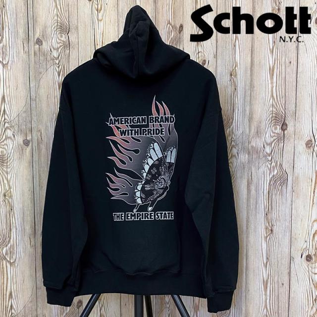 送料無料 Schott ショット HOODED SWEAT FIRE BUTTERFLY プルパーカー スウェット 裏毛 782-3231005 メンズ ブランド トップイズム
