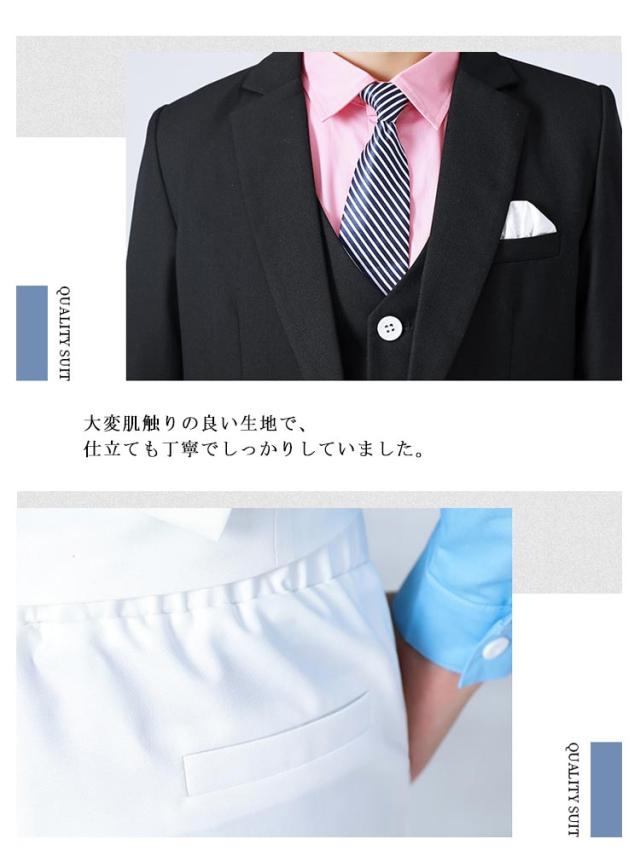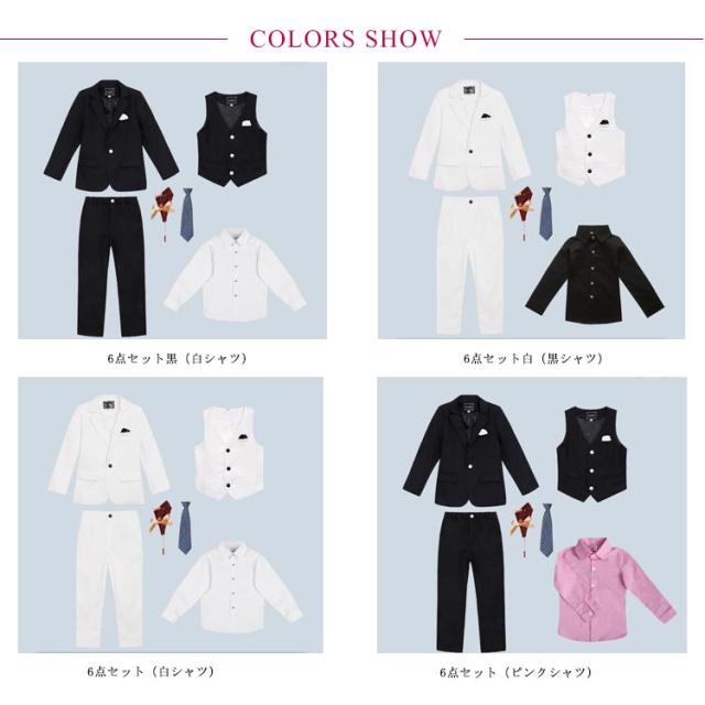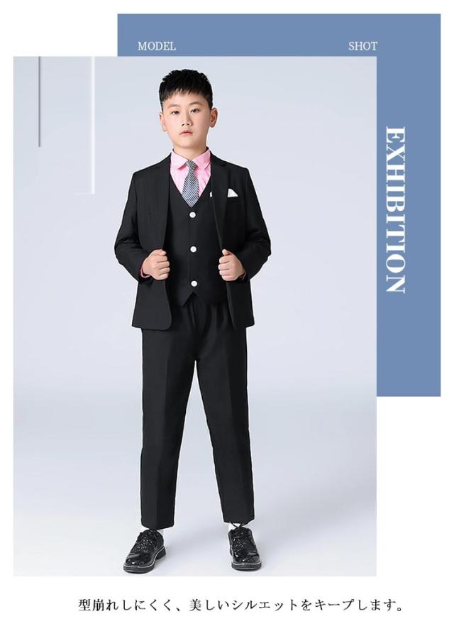 | 6点セット内容:ジャケット、ズボン、ベスト、シャツ、ネクタイ、ポケットチーフ6点セット。 太め、筋肉質のお子様はB体がオススメです。 通気性に優れた生地でさらっと快適。 型崩れしにくく、美しいシルエットをキープします。 大変肌触りの良い生地で、仕立ても丁寧でしっかりしていました。 卒園式、入学式、発表会など大切な式だけでなく、お食事会やお出かけにも気負いなく着ることができます! 入園式、入学式、結婚式、披露宴、発表会、演奏会、パーティーや誕生日、記念撮影などフォーマルなシーンで幅広くお使い頂けます。 | |