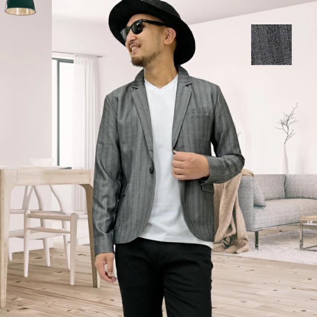 【閉店セール】ヘリンボーンテーラードジャケット 1557-63a メンズ ライトアウター ヘリンボーン ランダムヘリンボーン長袖テーラードジャケット テーラードジャケット 長袖 細身 セットアップ可 羽織り きれい目 シック 上品 カジュアル グレー M L XL 秋 冬