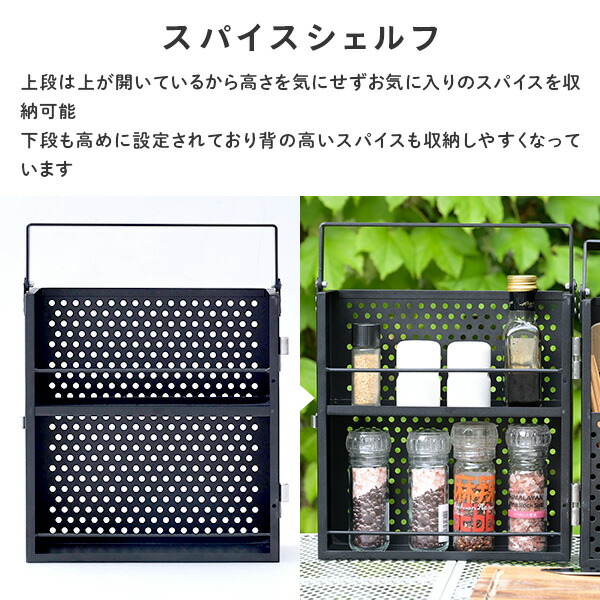 スパイスボックス 調味料ラック キャンプ LESR-27(BK) アウトドア 調味料入れ カトラリー スパイスラック おしゃれ 持ち運び 山善 YAMAZEN 【送料無料】