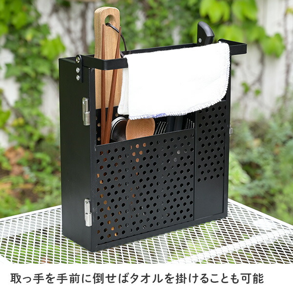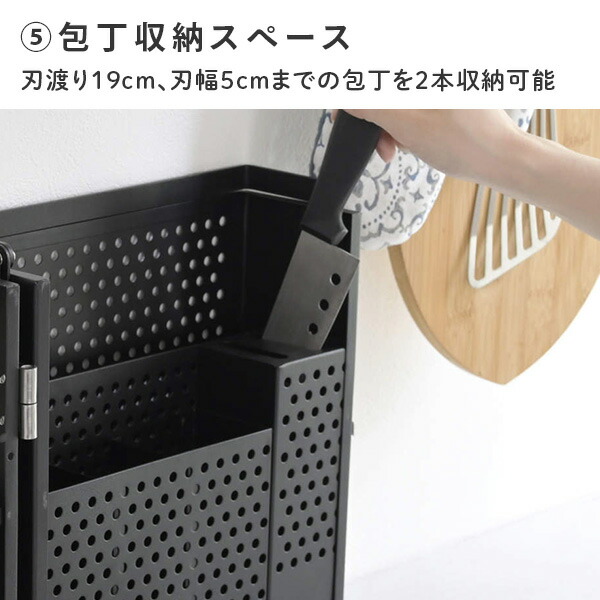 | 商品説明 | ●これ1台で調味料、キッチンツールを保管、持ち運びできる! ●左右に分割可能だから、調理スペースと食事スペースで分けて使用することができる ●パンチング穴直径:約5.8mm ●包丁2本収納可能(刃渡り19cm、刃幅5cmまで対応) ●まな板収納スペース:幅26×奥行2.3×高さ28cm ●ハンドルを手前に倒すとタオルを掛けることができます |