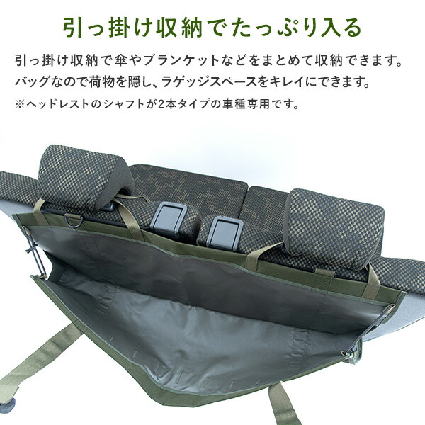 | 商品説明 | ●CORDURA FABRIC採用で汚れや傷に強く、更には撥水機能も兼ね備えている商品 ●キャンプやスキー、釣りなどのアウトドアにはもちろん、小さなお子様がいるご家族やペットを飼われている方などバンライフの様々な場面で役に立つ商品 ●ラゲッジスペースにさらなる収納力を生み出す便利収納グッズ ●傘などラゲッジスペースに常に置いてしまっているモノをきれいに整理整頓 ●ヘッドレストのシャフトが2 本タイプの車種専用 |