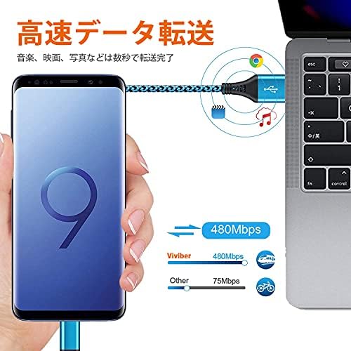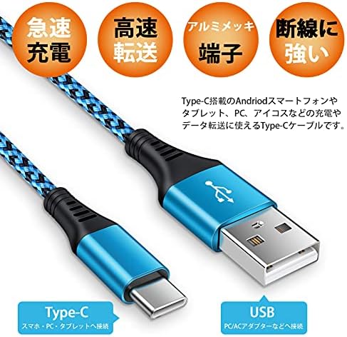 アンドロイド タイプc ケーブル Android 充電ケーブル スマホ ケーブル type-c usb タイプc ナイロン編み 高耐久 3A急速充電コード アンドロイドusbケーブル タイプc スマホ usb充電ケーブル galaxy xperia aquos oppo huaweiのタイプC機種対応(0.9m 青い) ...