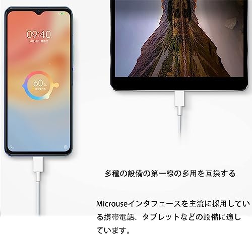 【急速充電・データ同期】高速 micro-b USBケーブルはQC3.0と5V/2.4Aの急速充電が対応しており、従来品の1Aより2.4倍以上速い充電が可能です。また、USB2.0基準により、最大480Mbpsのデータ転送速度をサポートし、1GBのファイル(例えば:映画、ファイル、曲など)を数秒間で転送完了します。