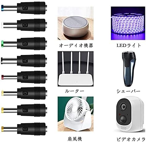 【プラグアンドプレイ】操作は簡単です。入力5vから出力12vまで、電源供給ケーブルは長さ1mです。十つの変換コネクタがあるので、ほとんどのデバイスを充電できます。