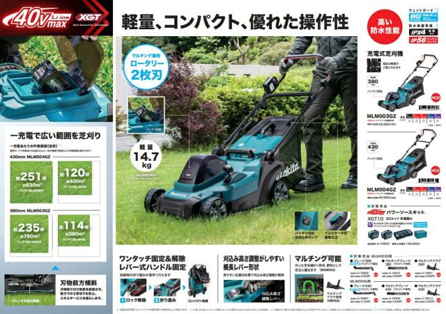 (マキタ) 充電式芝刈機 MLM003GZ 本体のみ 刈込幅380mm マルチング兼用ロータリー2枚刃 40Vmax対応 makita 大型製品