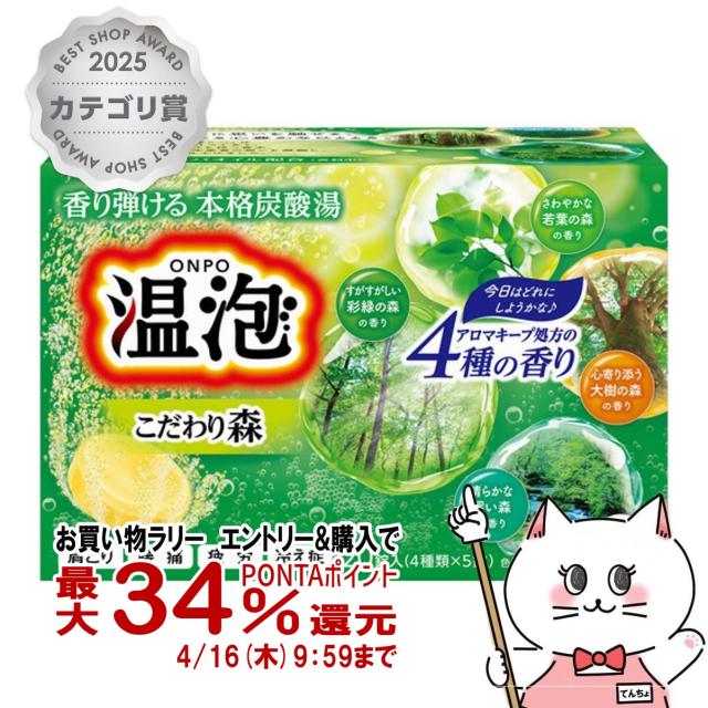 【お買い物ラリー 最大34%還元】アース製薬 温泡 こだわり森 炭酸湯 5錠×4種[医薬部外品][送料無料] (6054331)