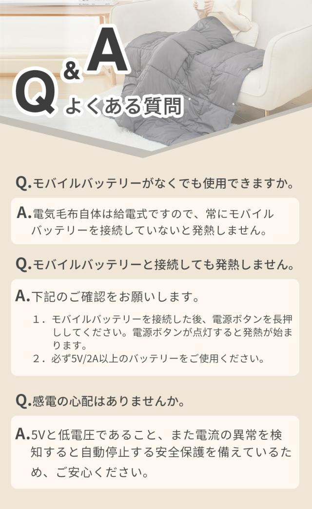 - 羽織っても 巻いても 暖かいまま 動くことができます。毛布がとても軽いので バッテリーが重く感じてしまいました。が、すぐに使うことができ、 感謝です。