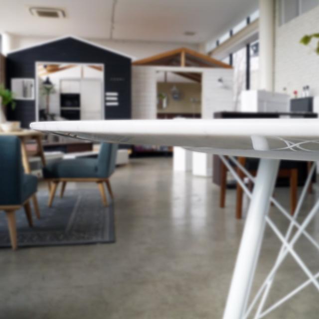 天然の大理石と細身の脚部がお洒落なダイニングテーブル