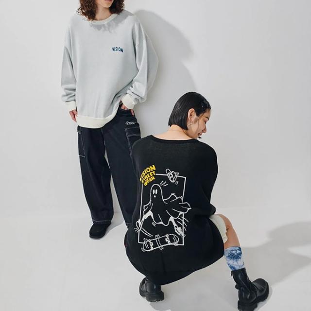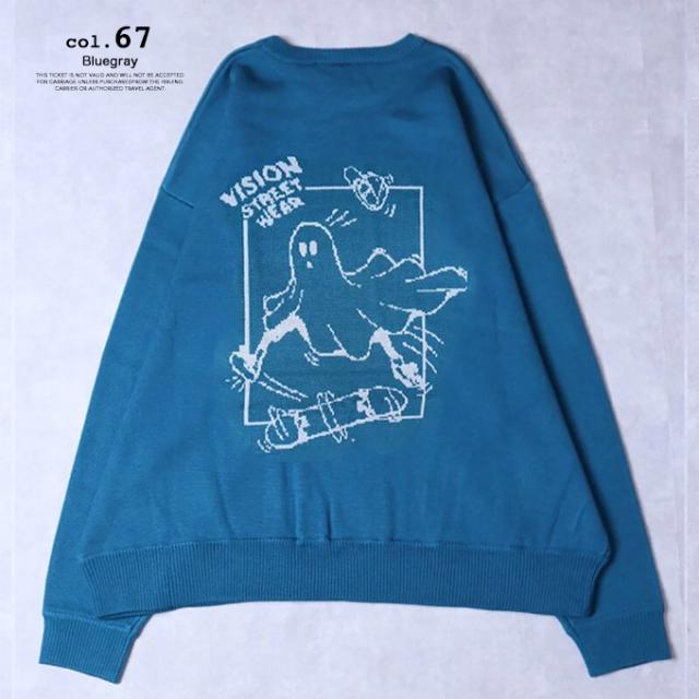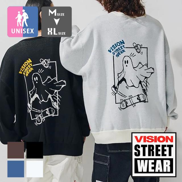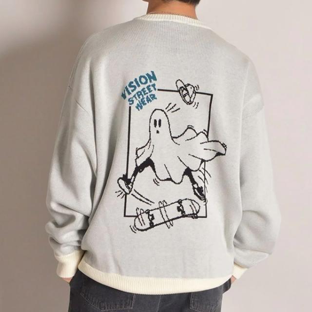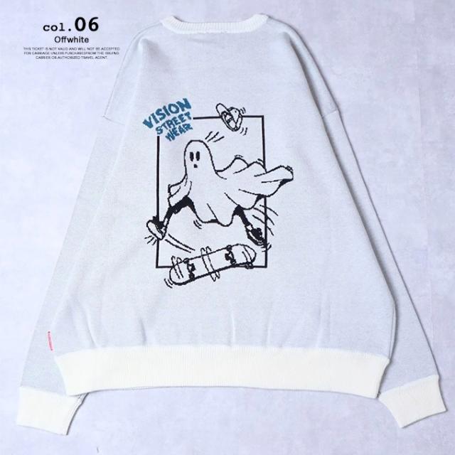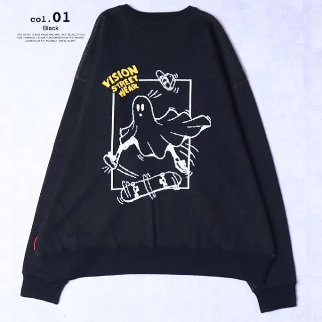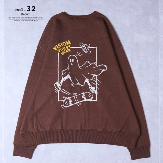 【SALE!!】 「 VISION STREET WEAR ヴィジョンストリートウェア 」 ダブルジャガード ゴースト スケーター ニット 3905040 / ヴィジョンストリートウェア ニット セーター プリント 長袖 バックプリント ジャガード ユニセックス ストリート カジュアル スケーター 2023AW ※