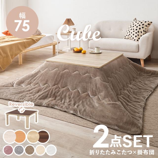 こたつセット こたつ布団 正方形 こたつ こたつテーブル おしゃれ こたつ布団セット 折りたたみ 1人用 幅75cm キューブ メレンゲ こたつセット 一人用こたつ こたつテーブル 折りたたみ