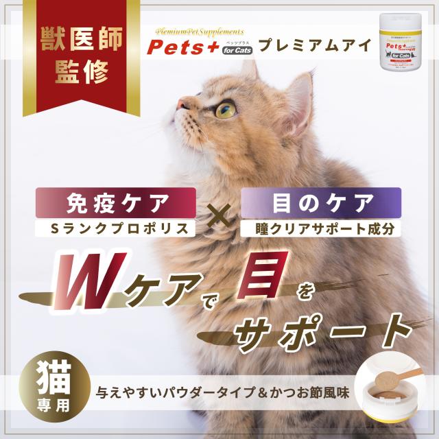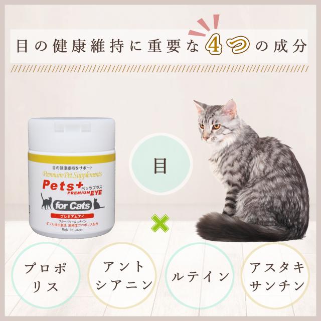 視界 が気になる愛猫へ 猫用 サプリメント ペッツプラス プレミアムアイ 2個セット 猫専用 プロポリス ルテイン アントシアニン アスタキサンチン ねこ サプリ ブルーベリー アスタキサンチン