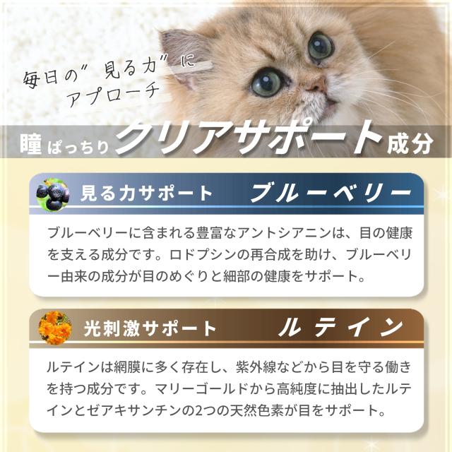 ●ペットもストレス社会と言われる近年、健康を意識される飼主に信頼のMade in Japan(日本製)猫の目のサプリメントをお届けいたします。