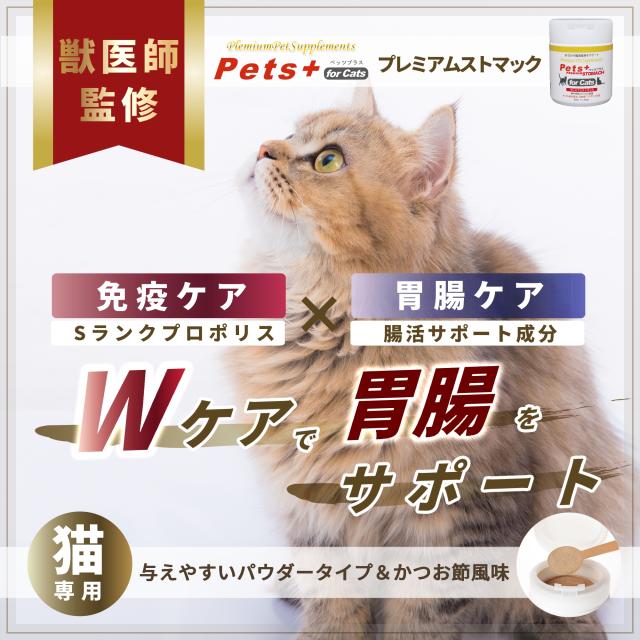 おなか の健康維持をサポート 猫用 サプリメント ペッツプラス プレミアムストマック 2個セット 猫専用 プロポリス 植物発酵エキス 有胞子性乳酸菌 ねこ サプリ 胃 腸 消化器