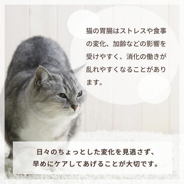●胃腸の健康や便通(排便の乱れ)が気になる場合や食欲にかげりがある猫にも与えていただけるサプリメント。