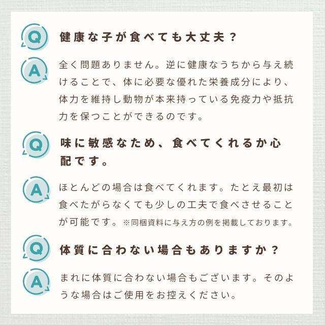 ●目的別に犬用・猫用それぞれ独自の配合で、若齢から高齢(シニア)までご使用いただけます。