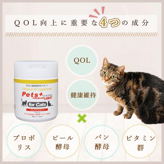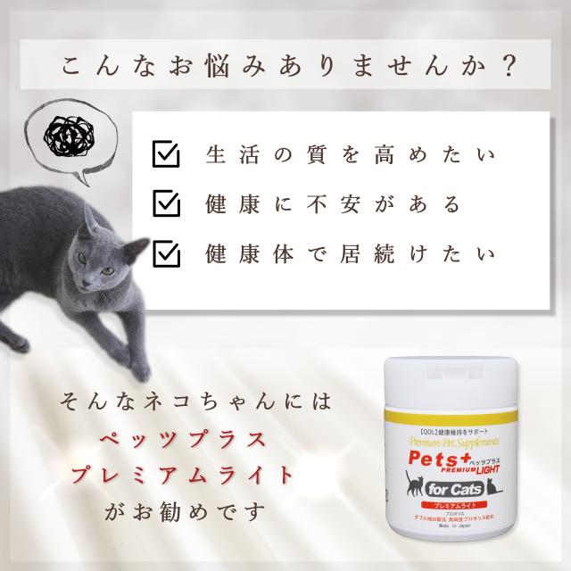 愛猫の健康維持に QOL向上 猫用 サプリメント ペッツプラス プレミアムライト 2個セット 猫専用 プロポリス ビタミン群 QOL 免疫力 免疫 猫 サプリ アップ ねこ