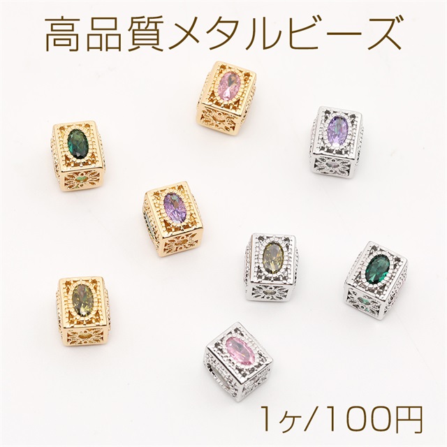 高品質メタルビーズ キューブ型 カラージルコニア付き 7.5×8mm(1ヶ)