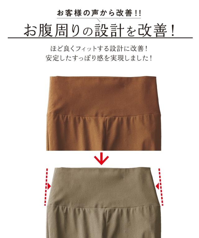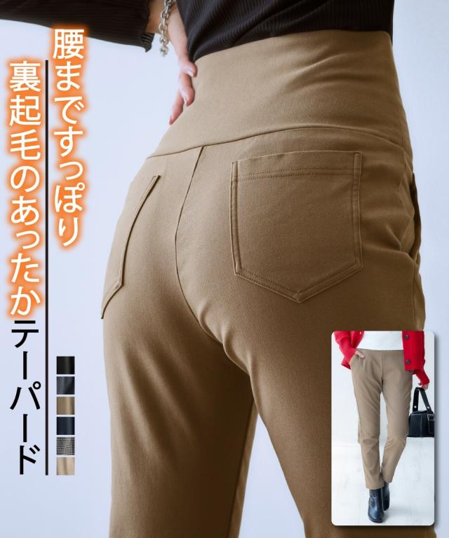 昨年大人気だったお腹すっぽり裏微起毛パンツシリーズに、待望のテーパードシルエットが登場! すっきり履きたいけどピタピタは苦手!そんな人にぜひはいて欲しい1枚です。 お腹をすっぽり包み込むデザインだから暖かなはき心地です。 お客様のお声から、ウエスト部を従来よりも更に程よくフィットする設計に見直し、安定したすっぽり感を実現しました! お腹に優しくフィットするウエスト部は伸縮性があるので締め付け過ぎず快適な履き心地です。 ■デザイン 腰周りはすっぽり包み込みながら、太ももにかけてゆったり楽ちんなはき心地に。