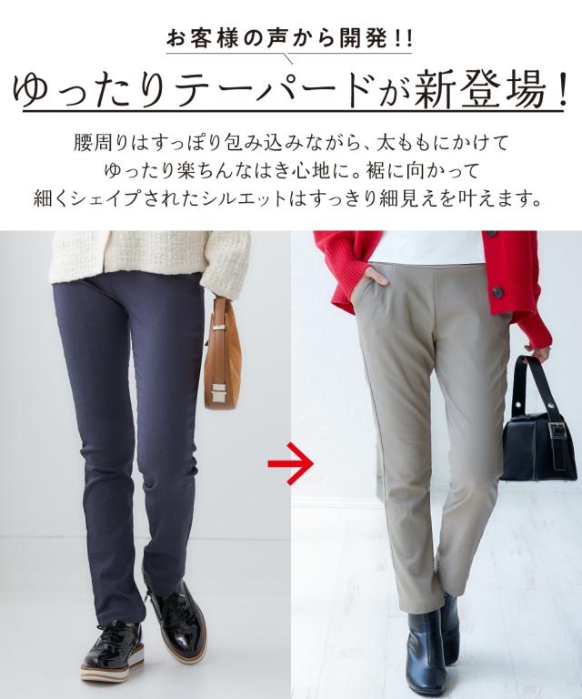 お腹すっぽり裏微起毛ストレッチテーパードパンツ ニッセン nissen